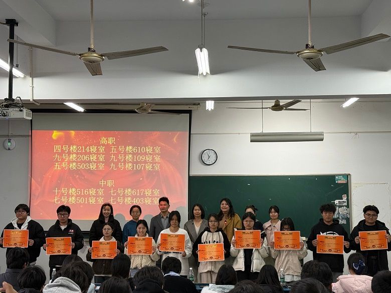 活动中,汪发亮对获奖寝室表示祝贺,肯定了各寝室在环境卫生、文化建设等方面的努力,同时希望获奖寝室珍惜荣誉、再接再厉,发挥模范带头作用;鼓励全体同学以此次活动为契机,增强寝室凝聚力,共同打造文明、友爱、奋进的寝室文化,以良好的寝室风貌助力学风建设。谢兰茨宣读了“模范寝室”及“寝室风采”表彰名单。全体老师为获奖寝室代表颁发荣誉证书,并与获奖成员合影留念,优秀寝室长代表方梦芝发言,她结合自身寝室管理经验,从卫生值日制度、学习互助氛围营造、室友沟通技巧等方面分享了心得。