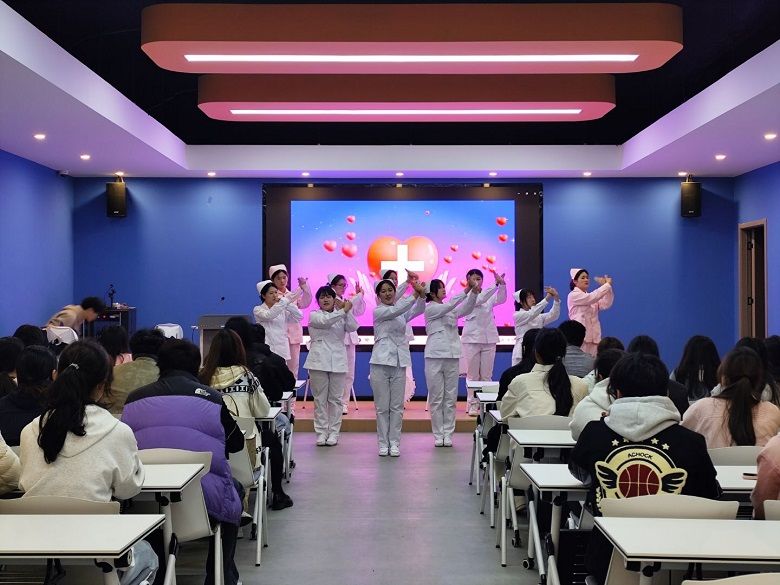 活动在温馨的手势舞《平凡天使》中启幕。活动中,沈后岩分享了自己的成长故事。从校园志愿服务到重症监护室的坚守,从课本上的南丁格尔精神到现实中的生命守护者,他讲述了“立德尚能”校训对自己职业选择的深远影响。
